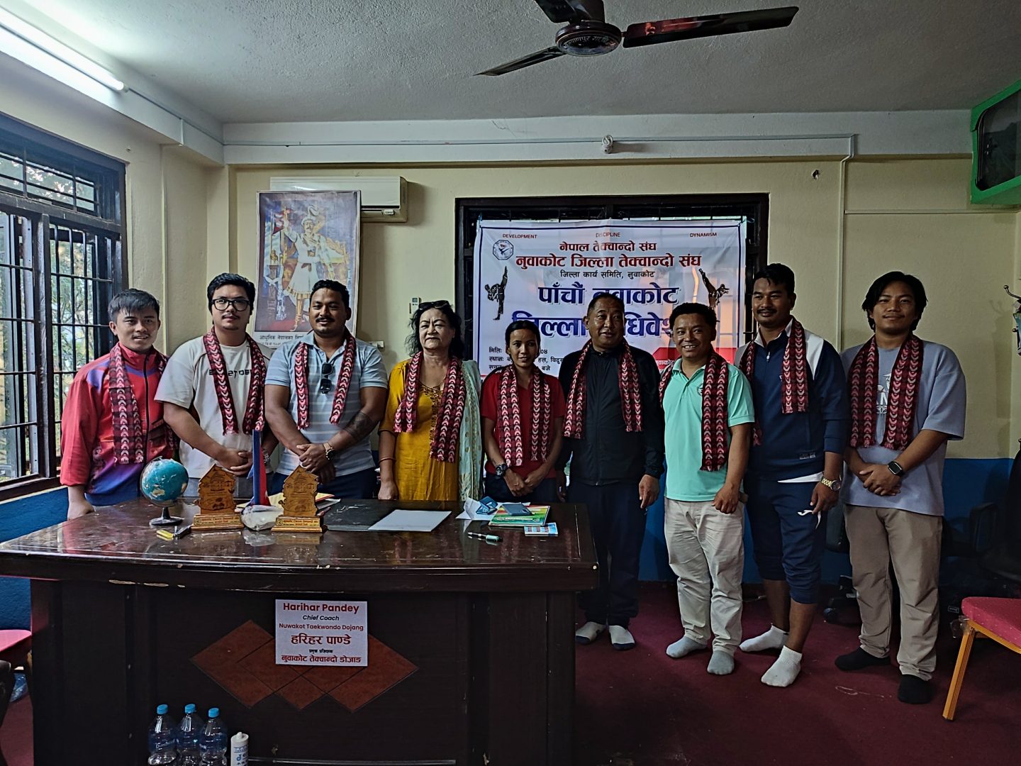 नुवाकोट। नुवाकोट जिल्ला तेक्वान्दो संघको पाँचौं जिल्ला अधिवेशन आज सम्पन्न भएको छ । जिल्लामा रहेका डोजाङ प्रमुखहरूको सरसल्लाह र सहमतिमा अध्यक्ष शरण घले तामाङको नेतृत्वमा सर्वसम्मत रुपमा सम्पूर्ण कार्यसमिति निर्विरोध निर्वाचित भएको हो ।